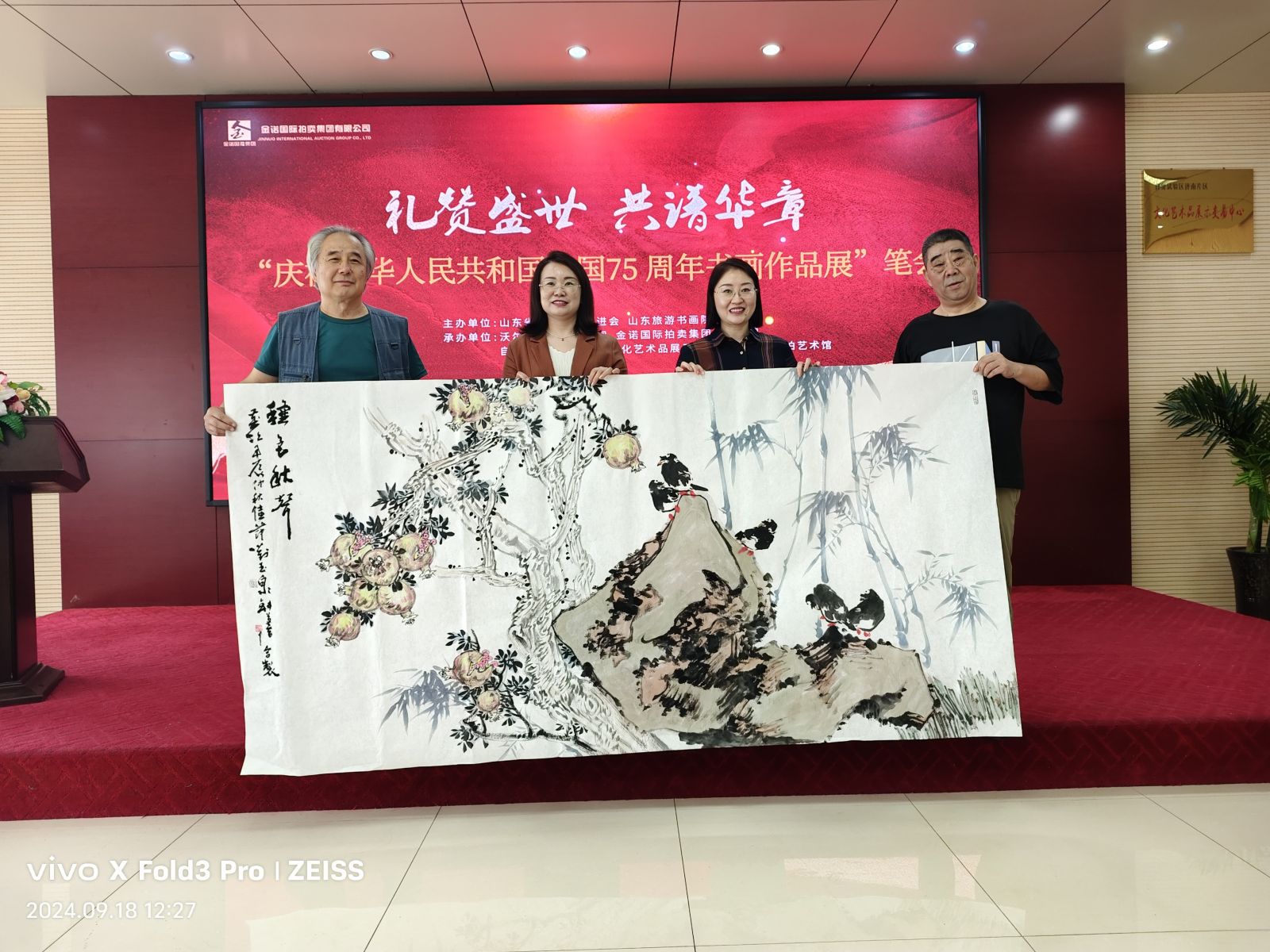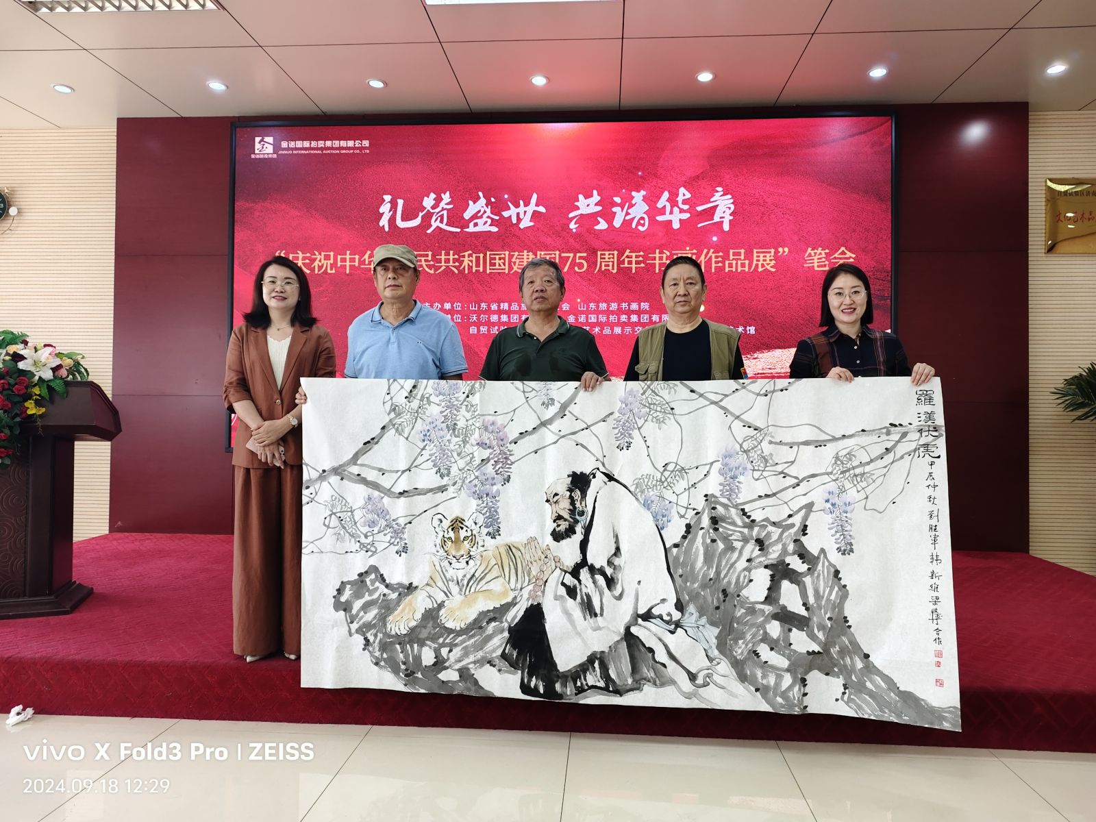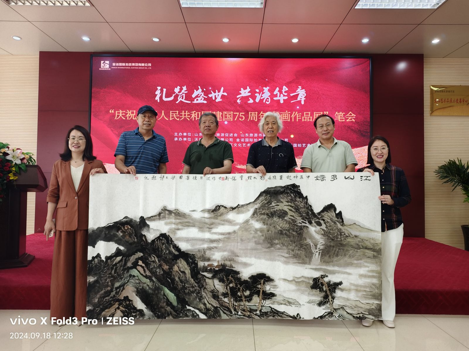 七十五載風雨兼程,七十五載砥礪前行,為慶祝中華人民共和國75周年華誕,9月18日,山東省精品旅游促會在省旅促會副會長單位沃爾德集團展開了一場精彩書畫筆會?;顒佑墒∥泵貢L、山東省精品旅游促進會會長杜文彬帶隊,著名書畫藝術家梁文博、劉玉泉、蕭維永、戴月、韓英偉、趙英水、馬林春、韓新濰、劉勝軍、郭執銓、孫華進、董廷新等參加,省旅促會副會長、沃爾德集團董事長林擘,沃爾德集團總裁、金諾國拍集團董事長商雪梅,金諾國拍集團總裁位琳陪同。