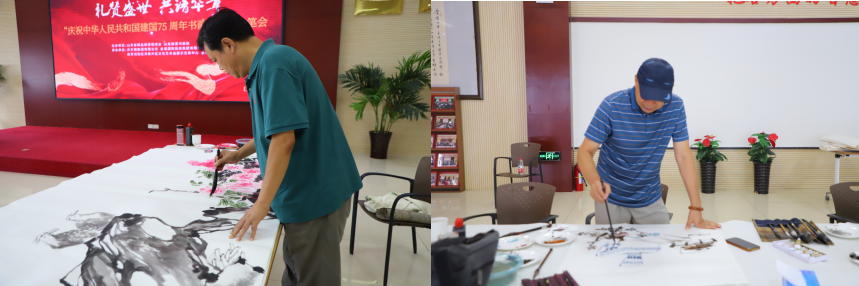 活動現場洋溢著濃郁的喜慶氣氛,藝術家們懷著強烈的責任感,即興揮毫潑墨,創作了巨幅國畫《羅漢伏虎》、《秋色秋聲》、《盛世華章》和《江山多嬌》等近三十幅作品,有國畫有書法,有的展現了祖國的壯麗山河,有的描繪了人民的幸福生活,有的反映了時代的偉大變遷,充分展示了書畫藝術家高超的藝術技能及深厚文化底蘊,體現了書畫藝術家們不忘初心、勇于當擔、甘于奉獻的精神,一幅幅精美的畫作抒發了對祖國母親的熱愛和祝福,它們不僅是藝術家們才華的展示,更是我們對祖國深深眷戀和美好憧憬的真情流露?,F場不時爆發熱烈掌聲,贏得在場觀眾喝彩。