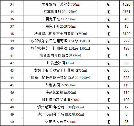 我公司將于近期推出酒類專場拍賣會,所含品牌種類齊全。(詳見清單)。